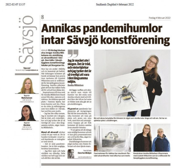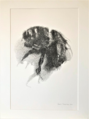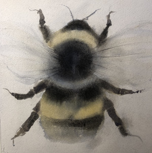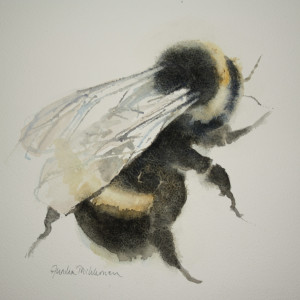 På sommaren när jag har fönstren öppna får jag ibland besök av humlor i min ateljé. Många akvareller har det blivit med humlor och det känns så rätt, de är viktiga och behöver all uppmärksamhet de kan få och blommor, vatten och boplatser.